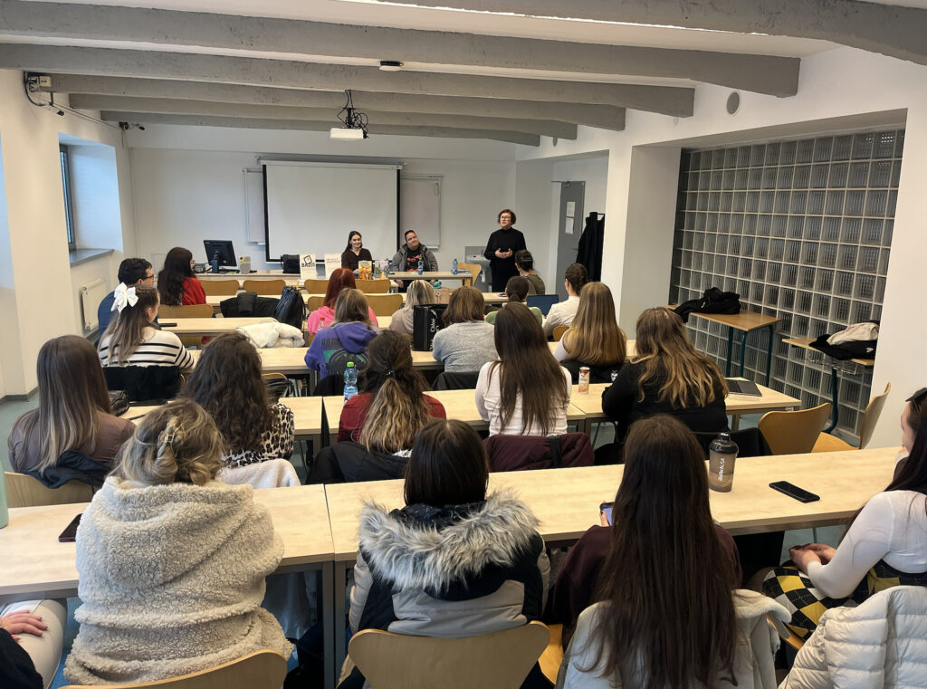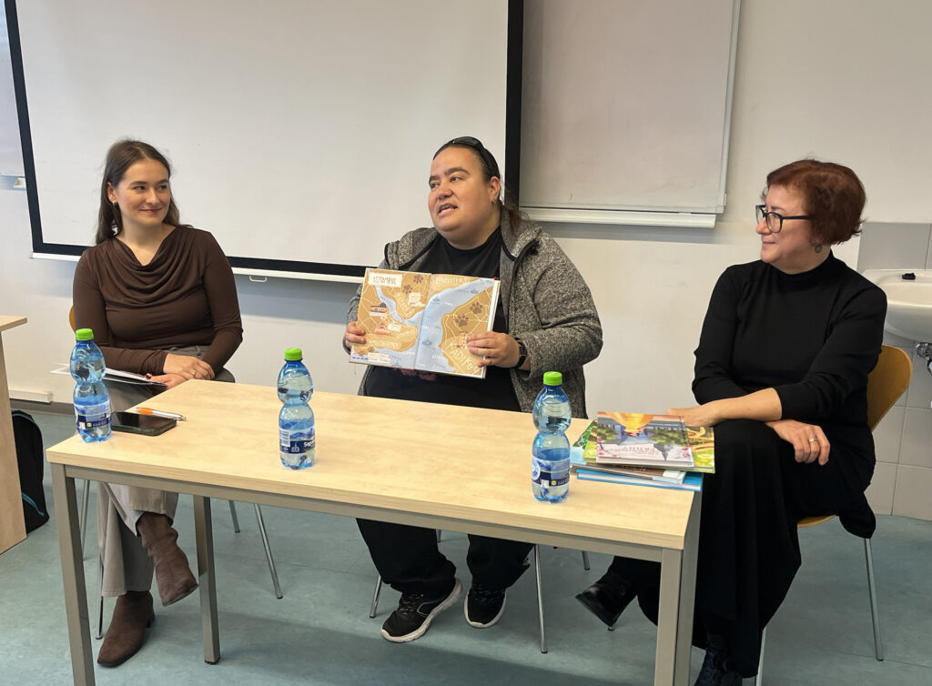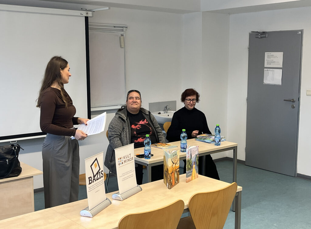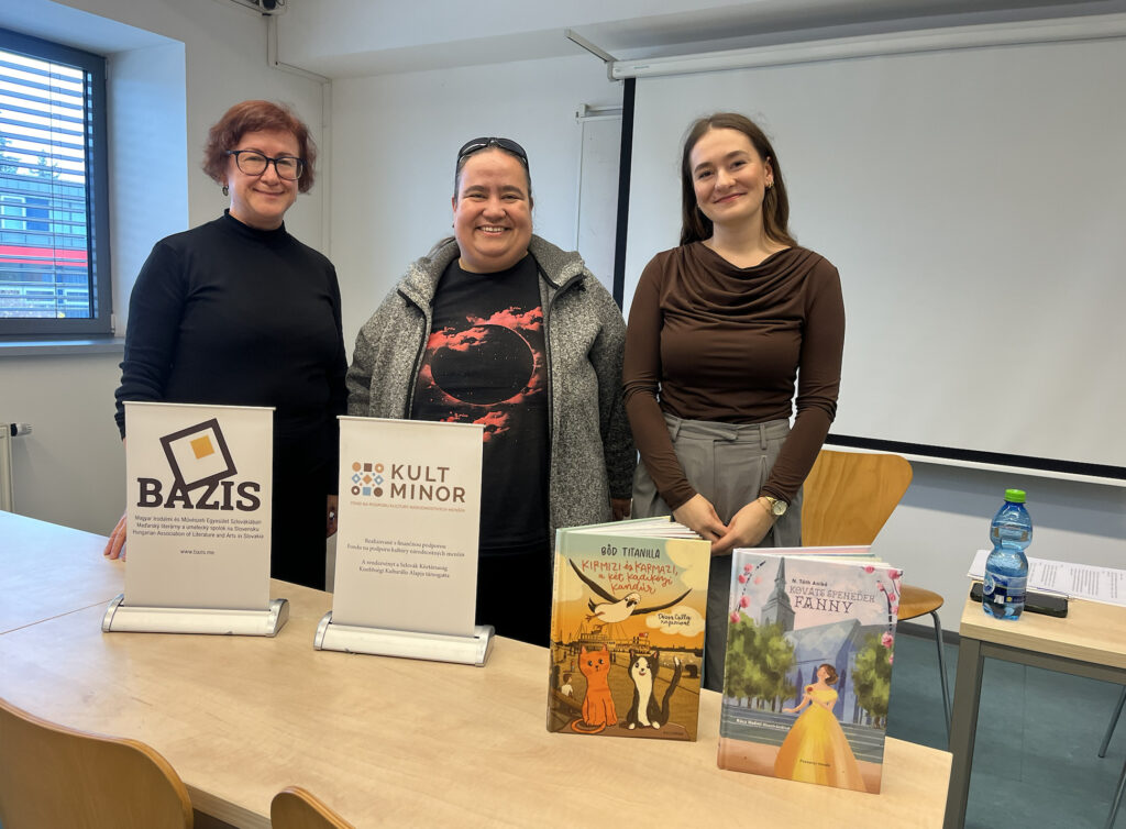 A Bázis Egyesület Irodalmi beszélgetések és felolvasások IV. programsorozata a Nyitrai Konstantin Filozófus Egyetem Közép-európai Karán zárult 2025. november 19-én. A Gyerkőckönyvlapozó című beszélgetésben az egyetemisták Bőd Titanilla sportújságíró Kirmizi és Karmazi, a két kadiköyi kandúr, illetve N. Tóth Anikó író, irodalomtörténész Hova tűnt a…?, Kováts Speneder Fanny és Fedezz fel! című gyerekkönyvei kapcsán kaptak betekintést az írói műhelybe Kovács Patrícia doktorandusz kérdései nyomán. A szerzők felolvasással fokozták a jó hangulatot. A fotókat Bandura Olívia készítette.